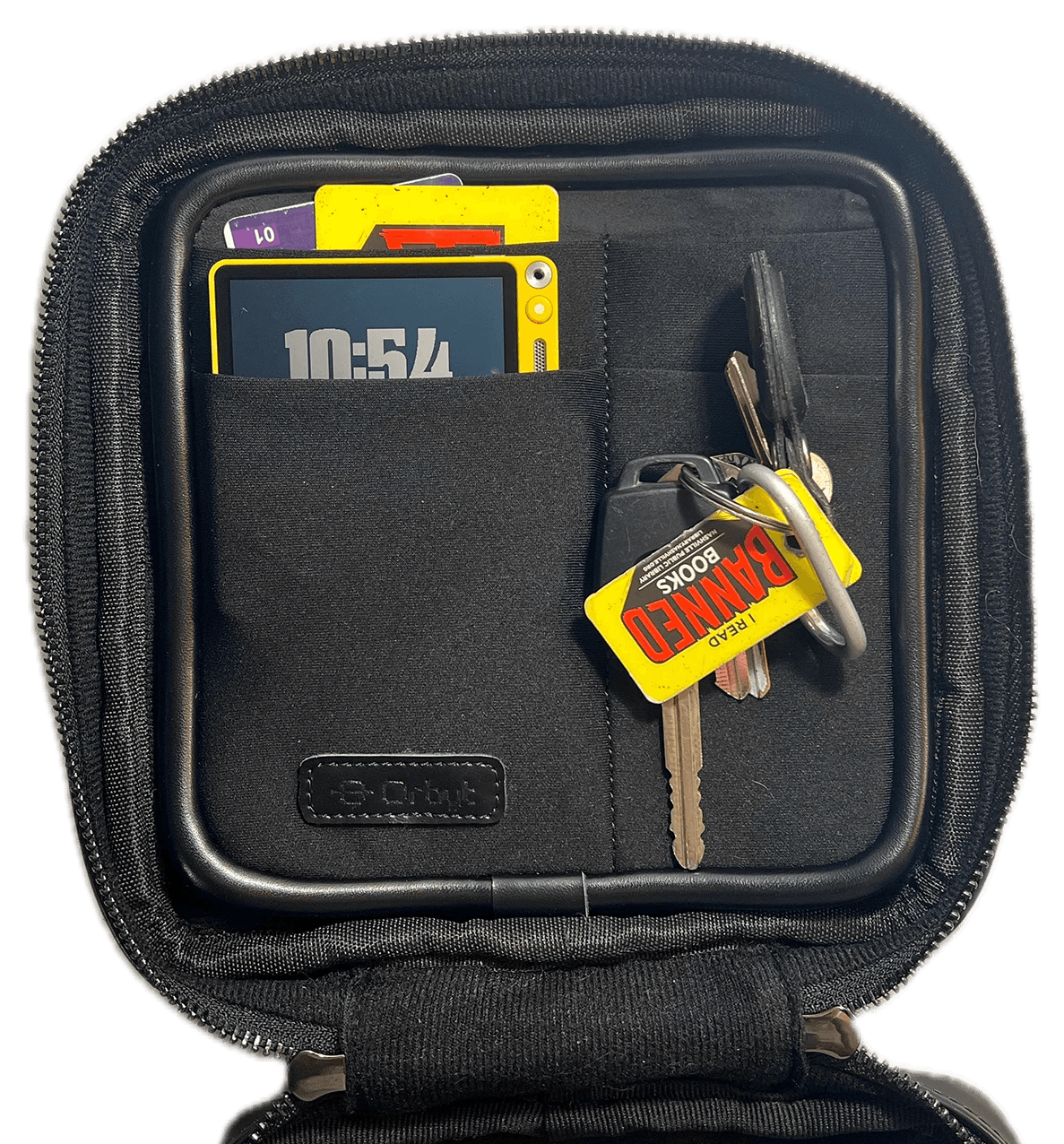Hey, I'm Ribbyt. I put together this kit to serve as the basis for all my adventures. It can hold my key inventory items in the panel, while my standby accessories are stored inside.